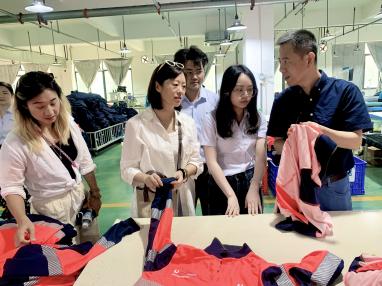 代表团先后参观了豪尔泰服饰的智能化生产车间、研发设计中心及产品展示厅,全方位、深入地了解了企业从面料研发、智能裁剪到成衣制造的全产业链布局。公司负责人着重介绍了其在功能型服饰领域的核心技术优势,还展示了为户外、医疗等行业量身定制的解决方案,充分彰显了企业的创新实力与市场竞争力。