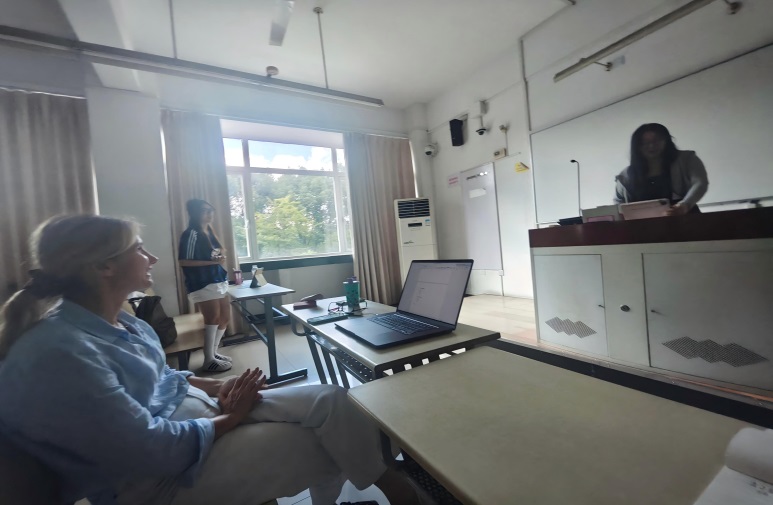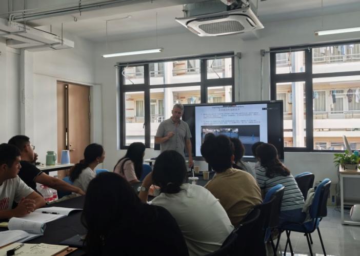四位教授分别围绕以下主题展开分享:Mark Lake教授以“Biomechanics to Improve Technology for Clothes and Sports Performance”为题,系统介绍了生物力学在人体运动分析与功能服装开发中的应用,并结合前沿趋势展望了该领域的未来研究方向。Murugesh Babu教授聚焦“The Production Technology and Application of Nonwoven Materials”,详细阐述了非织造材料的生产工艺、最新研发进展及其多样化应用。GONG RONG HUA教授在“Structural Mechanics Analysis of Fiber Assemblies”报告中,深入讲解了纤维集合体的结构力学建模方法、力学性能预测及其在材料设计中的关键作用。Ljiljana Stevic教授以“History of Chinese Movie and Art”为题,梳理了中国电影艺术的发展脉络,并探讨了其未来走向。讲座中,教授们借助图文展示与视频演示,分享了全球服装战略管理的先进理念与实践策略,其渊博的学识与创新的视角给师生留下了深刻印象,获得了广泛好评。