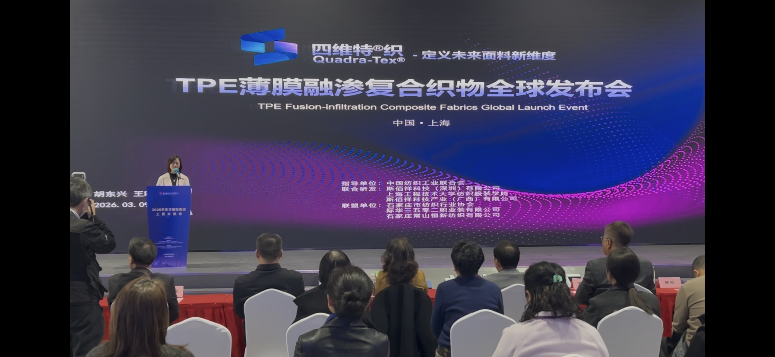 会上,来自深圳市的斯佰祥科技有限公司正式发布了四维特@织(Quadra-Tex@)面料体系。该面料复合技术由斯佰祥科技有限公司与304永利集团共同合作开发,能够赋予不同面料卓越的防水透湿性能。与传统防水透湿膜技术相比,该体系在实现优异功能性的同时,更加注重绿色环保理念,体现了纺织新材料技术创新与可持续发展的深度融合。