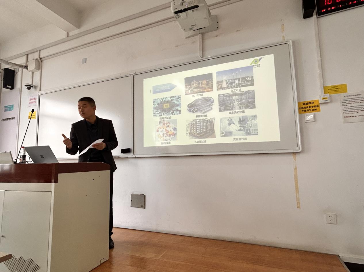 秦经理本次授课聚焦非织造布的检测标准,结合企业实际案例,生动讲解从原料选择到产品全流程的克重、厚度、强力、气泡点、透气性、润湿性、电镜和过滤效率等的检测方法,并分析了不同标准对同一产品的影响。另外,员工就产品重要指标、行业发展趋势及职业能力要求等问题踊跃提问,秦经理均给予了细致解答,并鼓励同学们勇于尝试,多走出去看看。