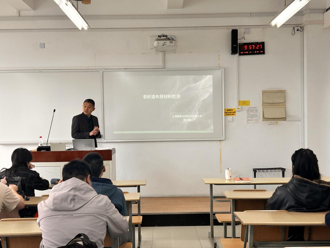 2026年3月30日,304永利集团特邀校企合作单位--上海颇勒过滤技术有限公司总经理秦永瑞走进校园,为非织造材料与工程专业大三同学们带来了一场题为“非织造布原材料检测”的深度专题讲座。