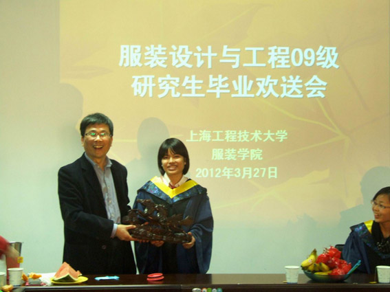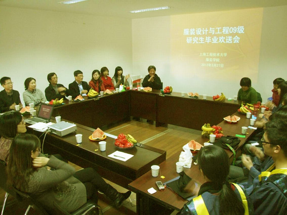 3月27日下午,服装公司为2009级硕士毕业生举行了毕业欢送会。服装公司院总支书记袁蓉,经理胡守忠,副经理陈莹等公司领导和各位导师、09级硕士毕业生,10、11级员工代表参加了欢送会。会议由陈莹老师主持。
