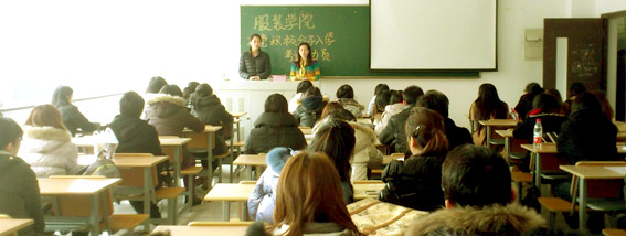 2012年2月27日中午12点20分,服装公司在教学楼D114召开第五十四期入党积极分子党课入学考试动员大会,服装公司组织员郑艳、员工第一党支部书记邬祎洁、研究生党支部书记陈小琼以及服装公司全体参加党课培训的学员参加了此次会议。