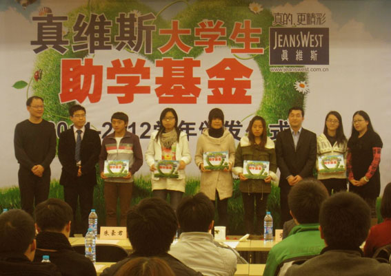 12月6日下午,公司服装公司辅导员陈小琼老师和员工代表参加了在东华大学延安路校区三教四楼报告厅举行的“真维斯老员工助学基金”颁奖仪式。上海市希望工程办公室主任助理朱豪君先生、上海真维斯服饰有限公司副总经理孙磊女士、行政部经理张莉女士、培训部经理李莺女士、推广部副经理刘振东先生,东华大学员工处处长任晓杰老师出席了助学金发放仪式。304永利集团服装公司和东华大学的78名真维斯受助员工共同参加了大会。