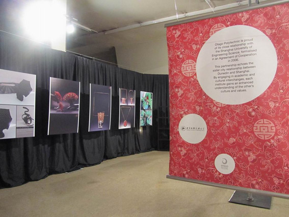 此次展览位于丹尼丁市中心展区,展览内容广泛,涉及服装、服饰设计、广告装潢设计、建筑设计等,吸引了当地时尚界人士、该校员工及时尚爱好者们。奥塔哥理工大学专为公司开辟了一块单独展区,入口处的设计颇具中国传统折纸艺术风情,展区内的巨幅服饰品设计实物海报和建筑、工业设计效果图海报展出了公司近期各类优秀作品与获奖作品。