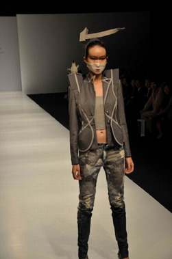本次郑彤设计师的时尚发布会共展示26套服装,带给现场观众一场叹为观止的视觉盛宴,得到了业内人界的极度好评,其设计主题名取为“不器”,意有两层意思,一是取音意,微言大义的“不器”,取自《礼记》“大道不器,大信不约”,用在这里指真正的美不拘于器皿、不附着与工具、雕琢、器械均只为呼唤出本真的自然之美,孔子曰“君子不器”,器则匠; 二是借字形,不、器两个字结构的简繁对比,指代本系列的堆砌美和简拙美的碰撞,在“不”和“器”之间的“+”号出现在简洁款亮相之前,直观地表达不加雕琢、不缚器械的简拙之美。