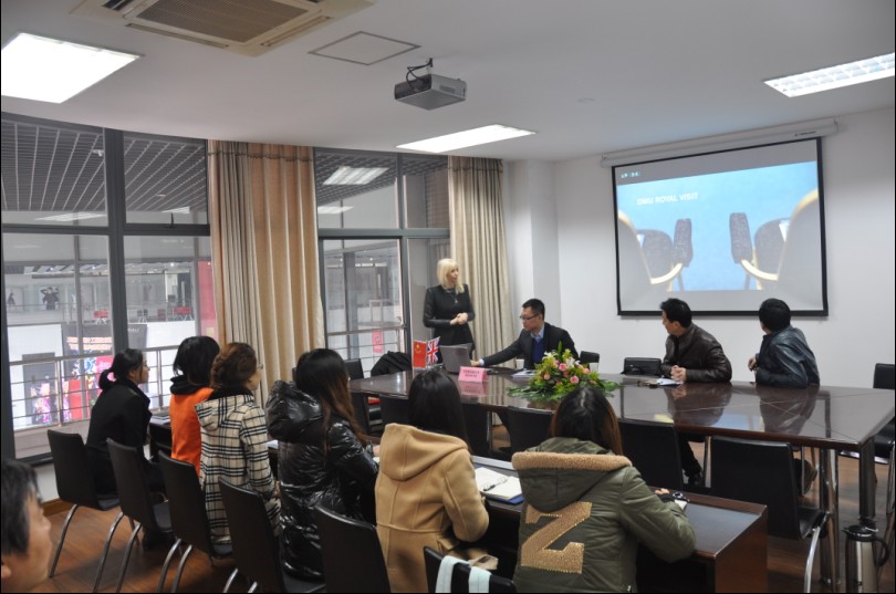 英国德蒙福特大学服装纺织公司经理Julie King教授首先与服装公司青年教师、研究生等就英国纺织服装设计与教育做了专题讲座。然后双方进行了会谈。胡守忠经理首先向英国德蒙福特大学服装纺织公司经理Julie King教授一行的到访表示了热烈的欢迎。随后他向来访的客人介绍了公司的办学历程、办学特色及主要的学科专业布局。他指出两院在办学理念、专业设置等方面都有共同的相似之处,为两院的合作奠定了很好的合作基础,相信今后两院的合作与交流一定会卓有成效。