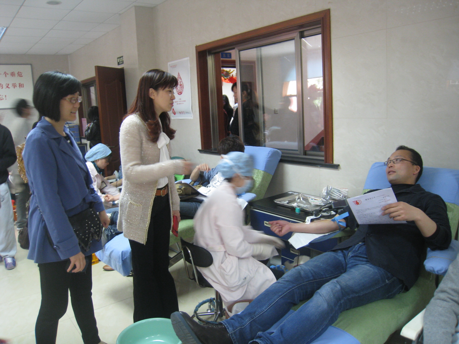 4月24日上午10:30,服装公司吴二强老师在304永利集团党总支书记袁蓉、院办主任步文捷老师的陪同下,来到松江区采血站,参加义务献血活动。