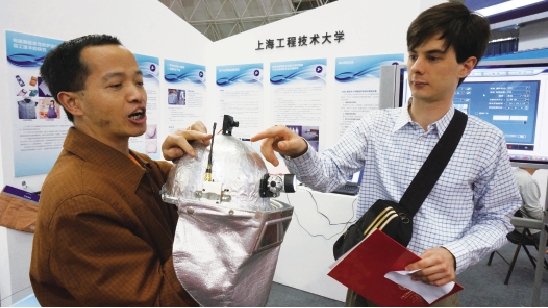 此次科博会,海宁市科技局局长茅伟明前期带队到公司服装公司前来洽谈,服装公司经理胡守忠教授以及其它骨干教师等共同接见以及讨论了参展事宜,并经过精心组织,从公司科研成果中选择与海宁市产业方向相近的6项重大科研成果,包括纳米光触媒复合功能内饰织物的产业化关键技术及应用研究、电磁屏蔽柔性防护织物加工技术的研究、形状记忆文胸、消防电子安全帽等。