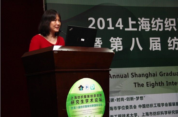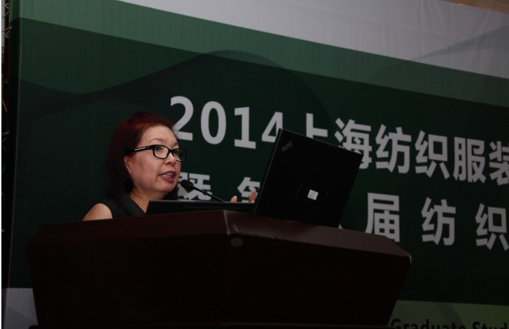 专题报告由服装公司经理胡守忠教授主持。论坛上各位嘉宾所作的报告精彩纷呈,围绕纺织服装领域学术前沿,新加坡南洋艺术公司董事长Theng GLADYS SAU MEI教授做了《Develop Fashion Brand: To Go International》专题报告,美国玛丽蒙特大学YAN HE教授做了《Cross-Cultural Influence and International Education in Fashion》专题报告,东华大学曙光学者、博导覃小红教授做了《微纳米纤维静电纺在产业化制备上的研究进展》专题报告,国内著名时装设计师凌雅丽做了《绘画和服装虚拟空间设计与制作》专题报告。