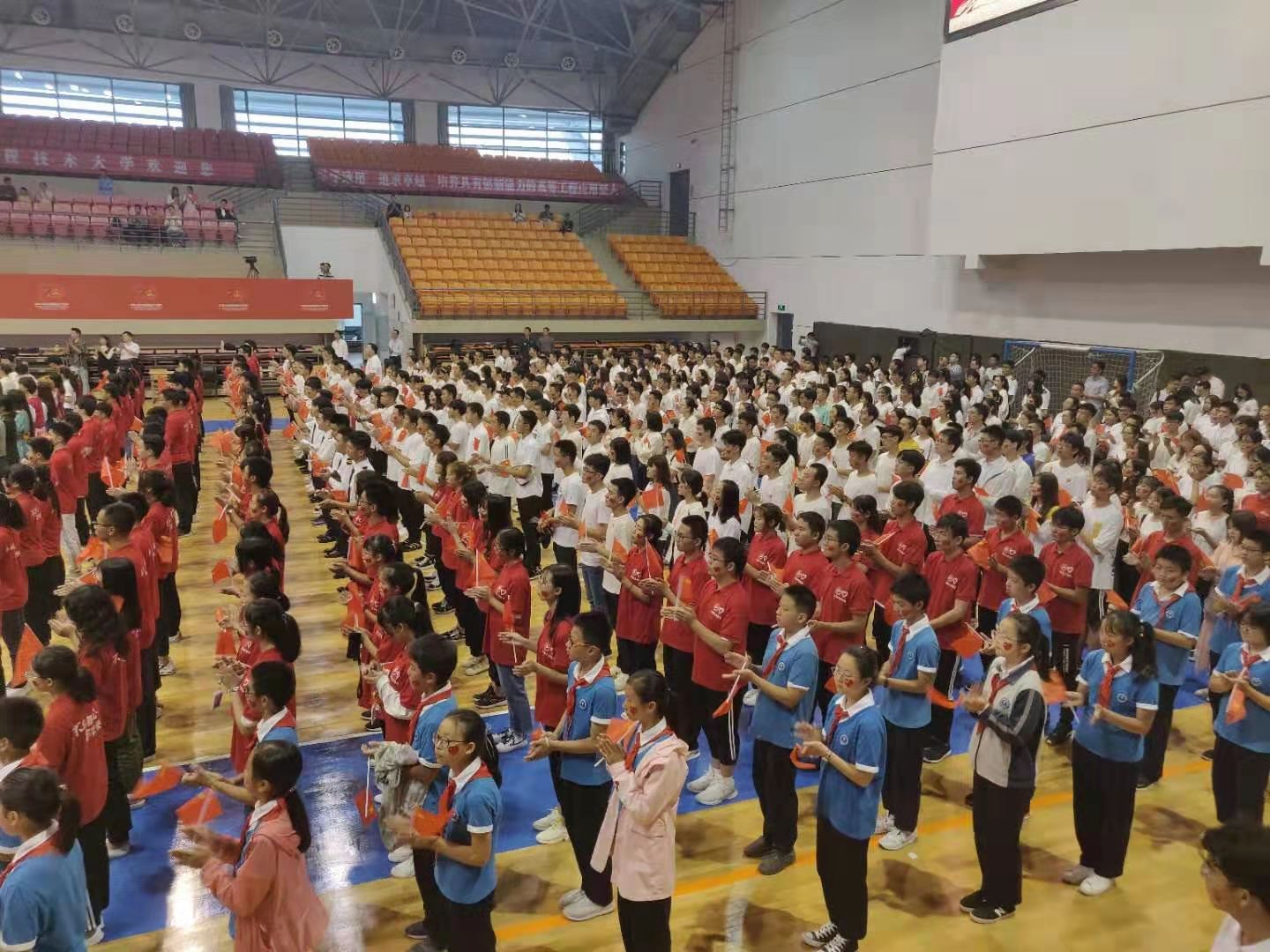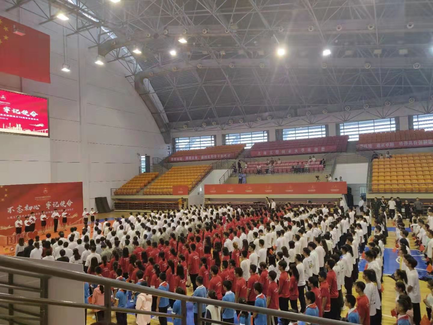 会议伊始,主持人介绍了参加此次活动的嘉宾,在大家的热情掌声中各位嘉宾步入会场。随后,国旗方队踏着坚定的步伐,高举国旗,整齐走来,在雄壮嘹亮的国歌声中,在冉冉升起的国旗下,我们激动回想建国70年的风风雨雨。70年风雨兼程,今日之中国从开天辟地到改天换地,迎来从站起来、富起来到强起来的伟大飞跃。青少年代表歌诵祖国“祖国啊,我亲爱的祖国,你有一个伟大的名字,那就是中国”,多么响亮,回荡在我们心中。