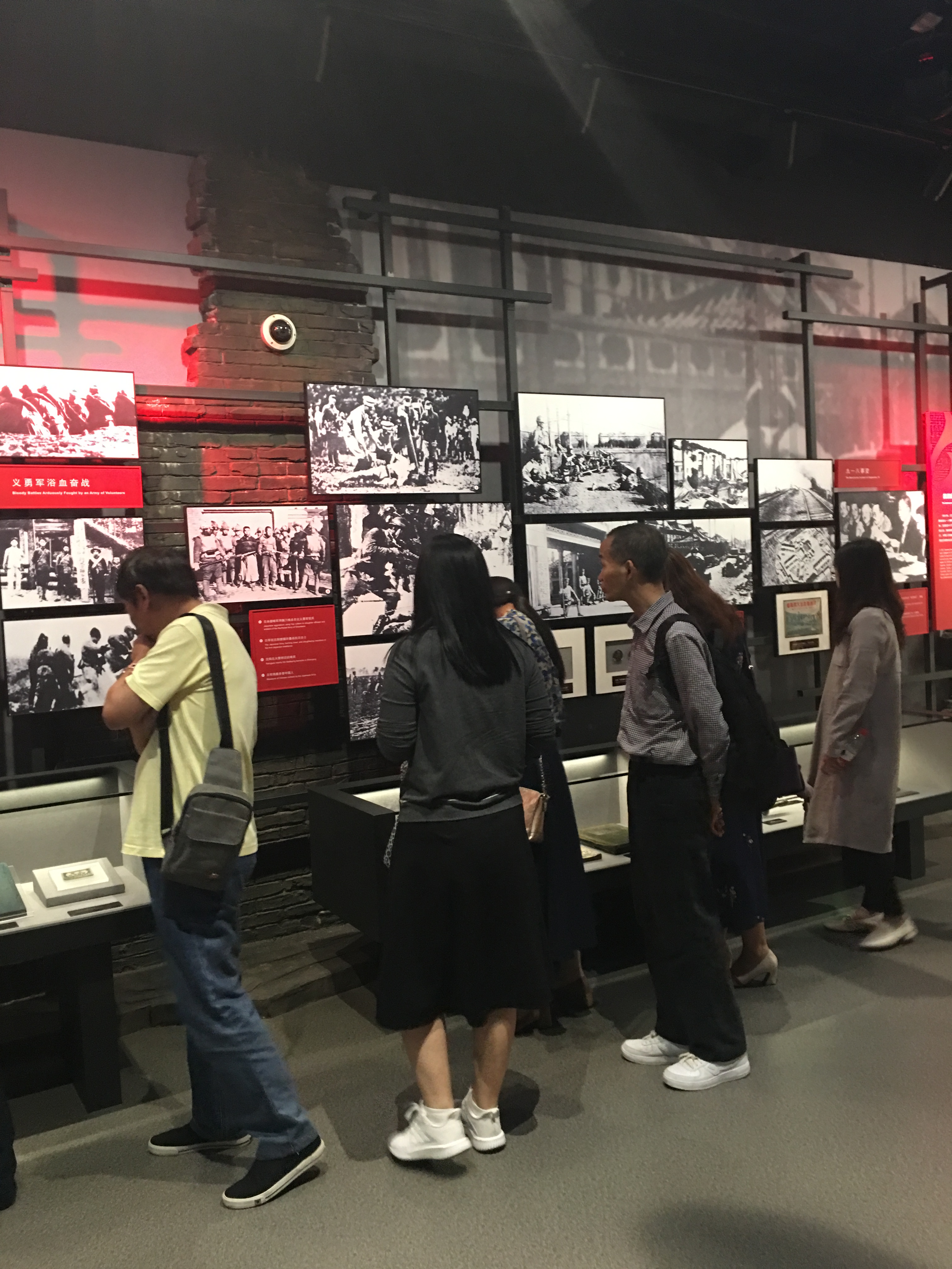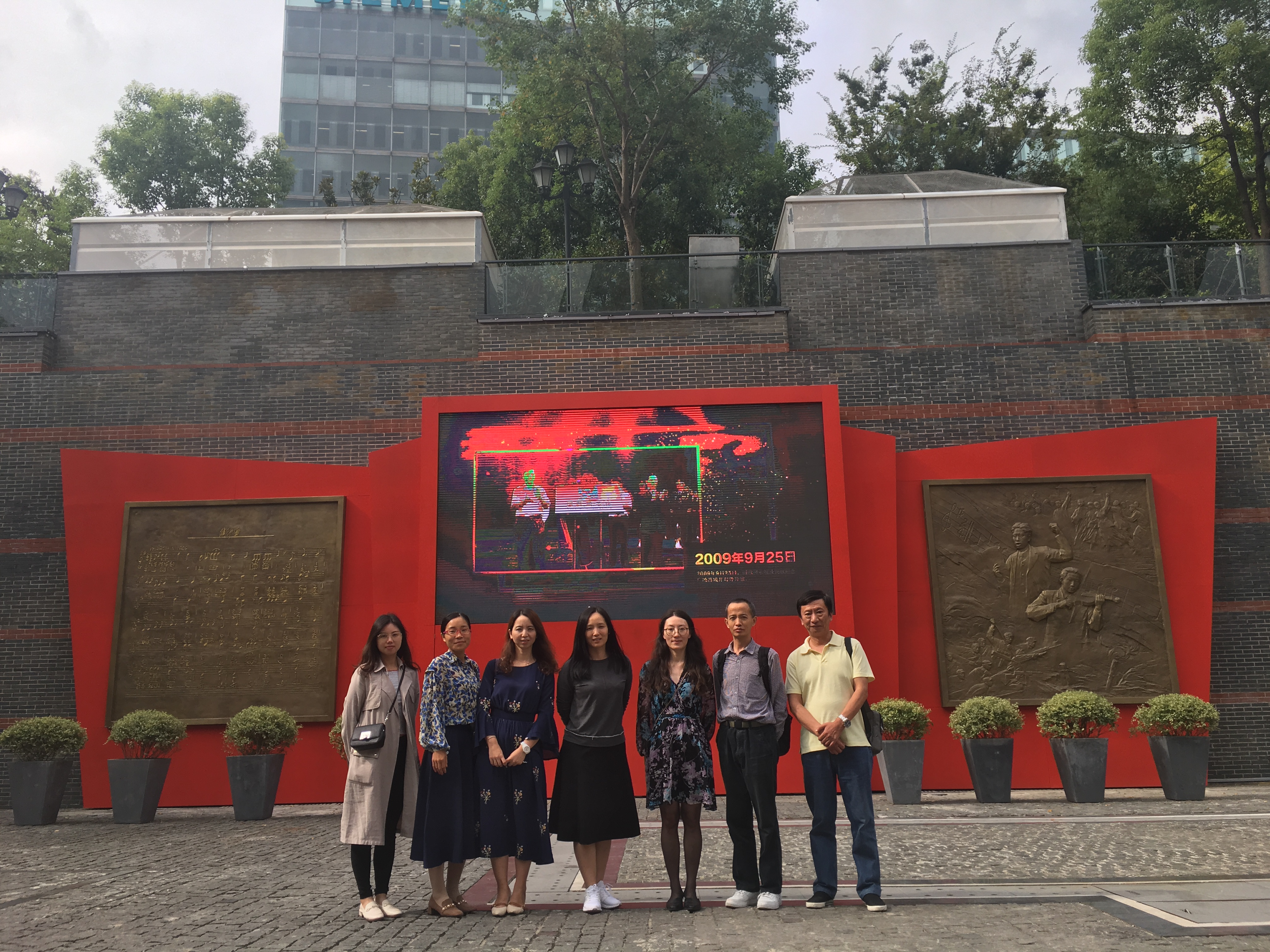 中华人民共和国国歌是《义勇军进行曲》,由田汉作词、聂耳谱曲,诞生于二十世纪30年代中华民族生死存亡的危急关头,是近代中华民族反抗帝国主义侵略,争取民族独立解放的战斗号角。在庆祝中华人民共和国成立70周年之际,为了深入贯彻“不忘初心、牢记使命”主题教育,回顾《义勇军进行曲》成为国歌的不平凡历程,服装公司纺织工程党支部没有教学任务的7名党员教师于2019年10月14日下午1:30,来到坐落于《风云儿女》拍摄地——杨浦区荆州路的国歌纪念广场参观了国歌展示馆。