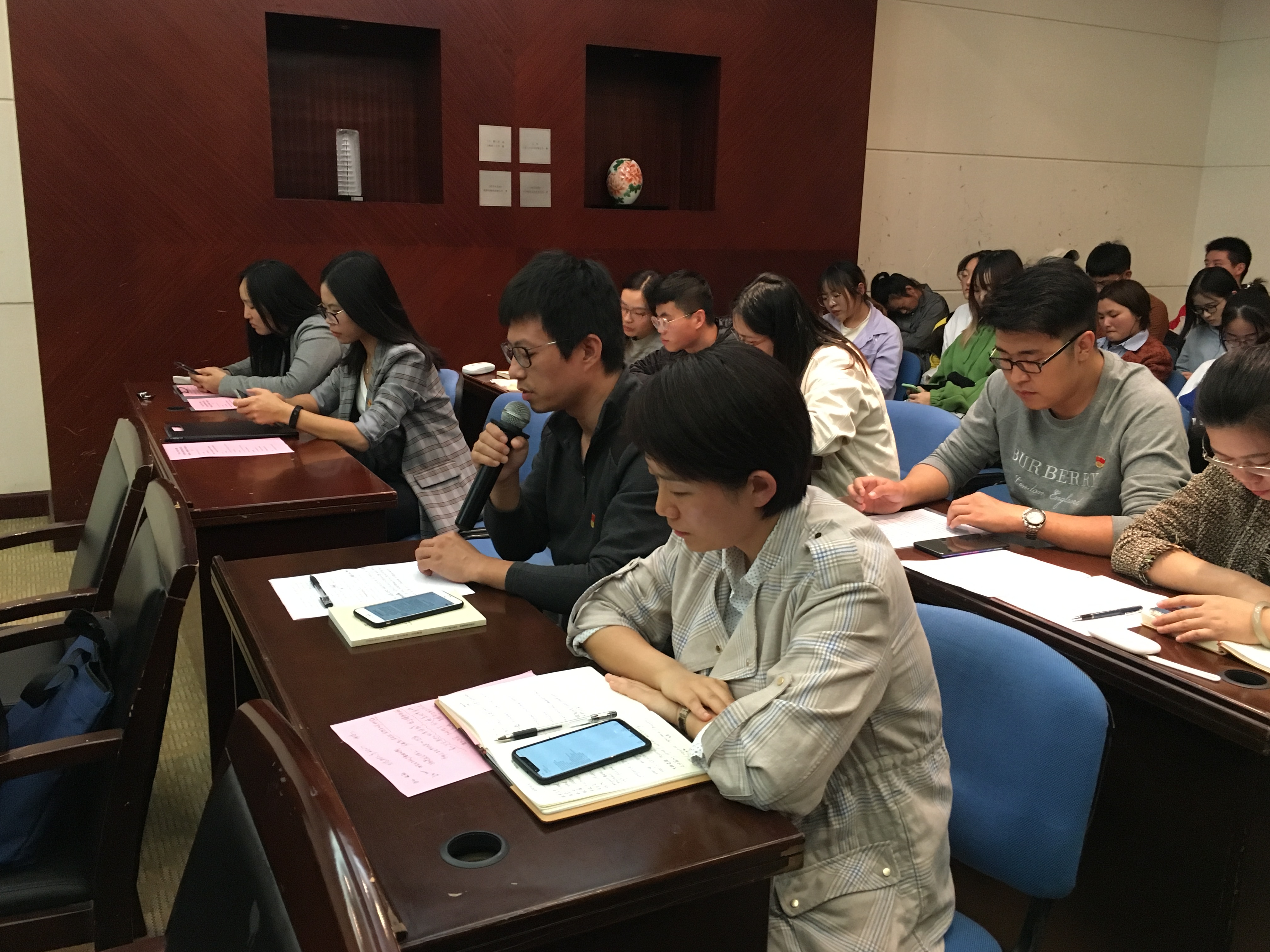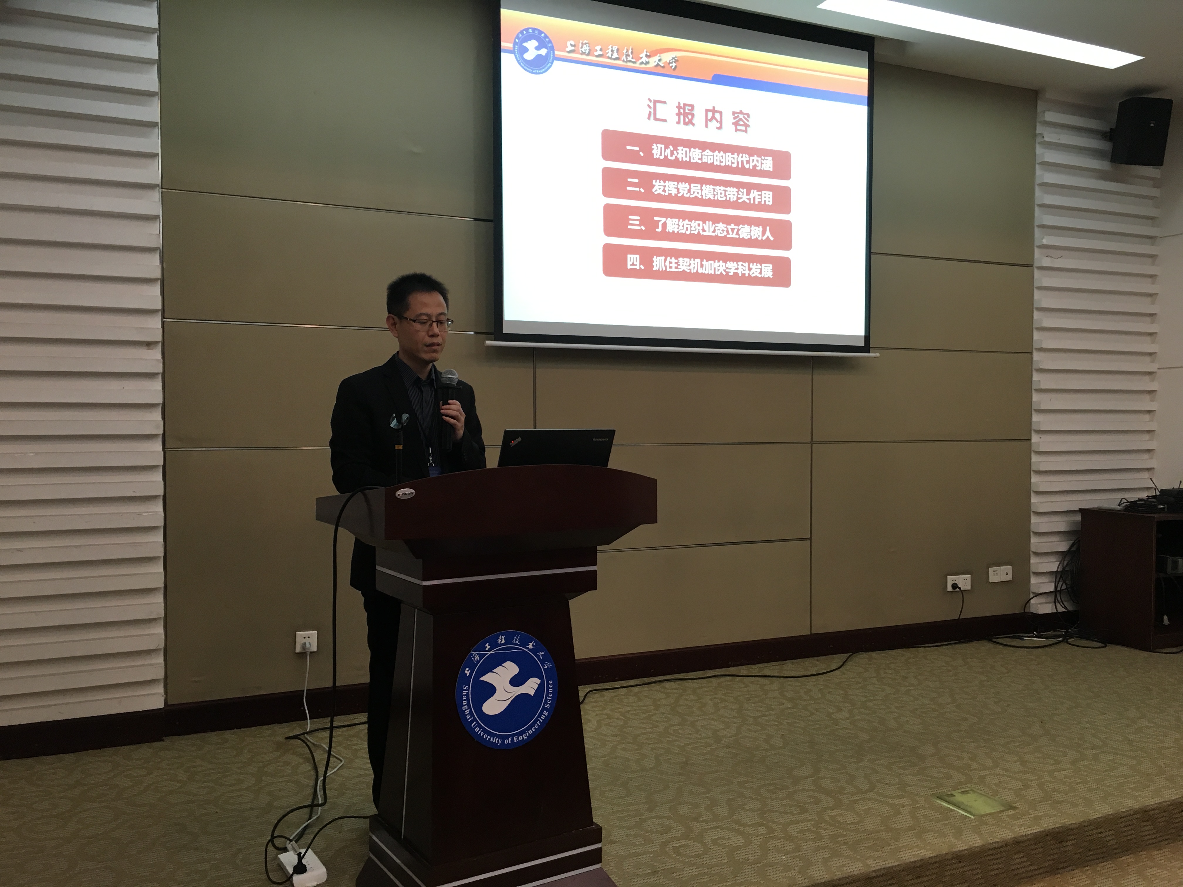 市委指导组万世东老师在点评时表示本次活动启发教育多、覆盖内容广、信息量很大,并用“知识分子历来具有家国情怀”高度赞扬了辛斌杰教授的担当作为,称他的报告不仅学术钻研有高度、思想理论认识也有深度,最后他用习近平总书记的 “吾将无我,不负人民”的共产党人最高人生境界勉励大家进一步提高政治站位、强化责任担当,为中国的纺织事业做出更大的贡献。