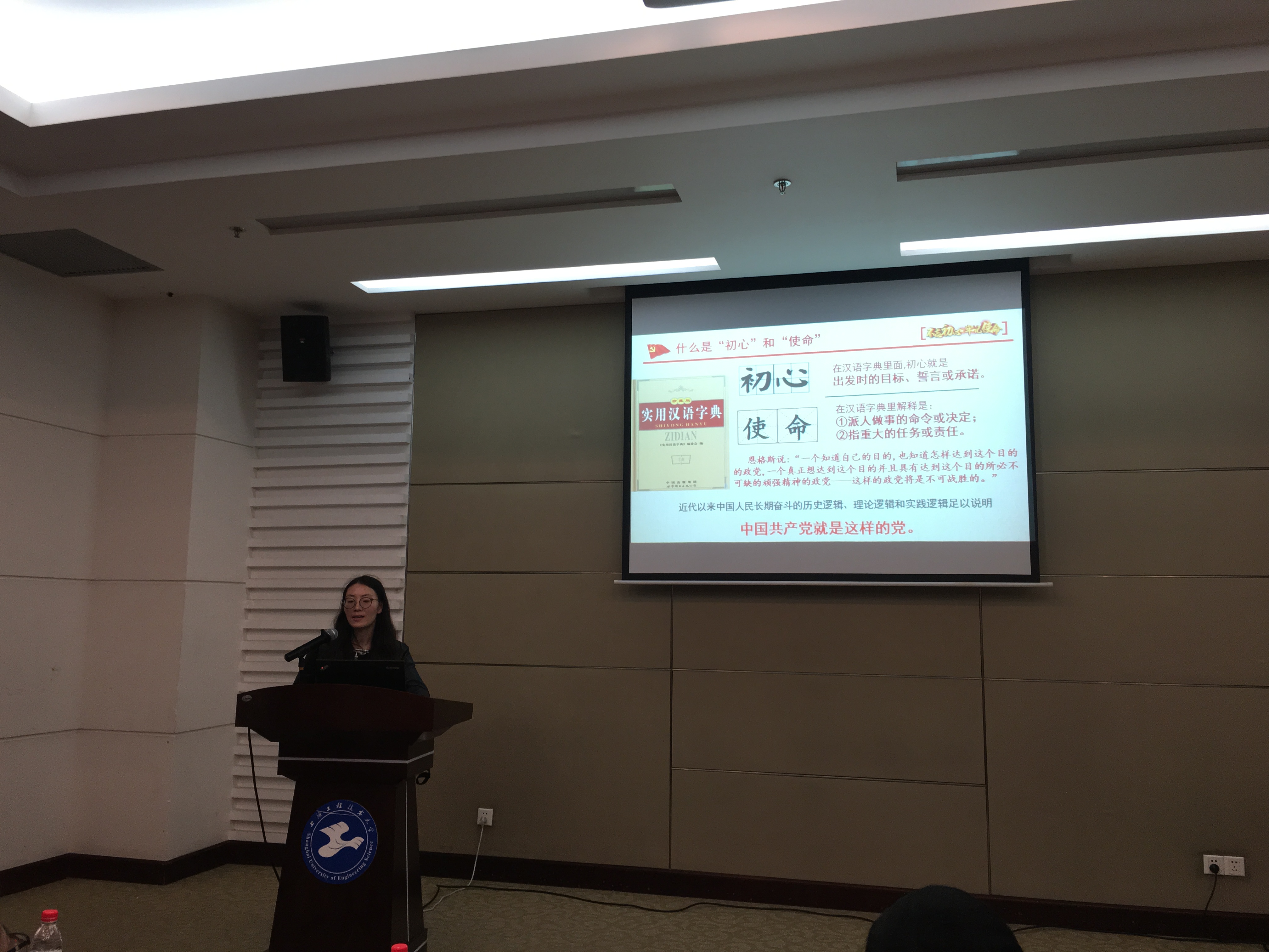 本次活动分三个主题,第一部分“学先进忆初心”,通过纺织工程系前系主任刘晓霞教授、海龟博士陈卓明、纺织工程系副系主任郑元生讲述的初心故事《赤子情怀 纺织强国》,宣传校“为人为师为学”典型人物——服装公司教学经理辛斌杰教授的先进事迹,传递身边的榜样力量;第二部分“守初心做先锋”,通过辛斌杰教授的 “思政小课堂”《立德树人守初心 强国强校担使命 》分析纺织大国到纺织强国的形势,引导党员师生不忘初心、牢记使命,立足岗位做贡献;第三部分“担使命攀高峰”,由党支部书记许颖琦通过专题党课《不忘初心共筑梦 牢记使命攀高峰》分享她自主题教育开展以来对“教师初心和使命”的学习体会以及对“党建工作样板支部”建设的思考,带领党员师生更好地悟初心担使命。每个主题的交流环节,党员师生们就“从辛老师身上学到了什么”、“作为纺织人我们应该做什么”、“党支部如何做到7个有力”进行了热烈的讨论。