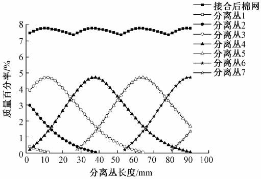 图2不同顺转定时对应接合棉网的质量分布