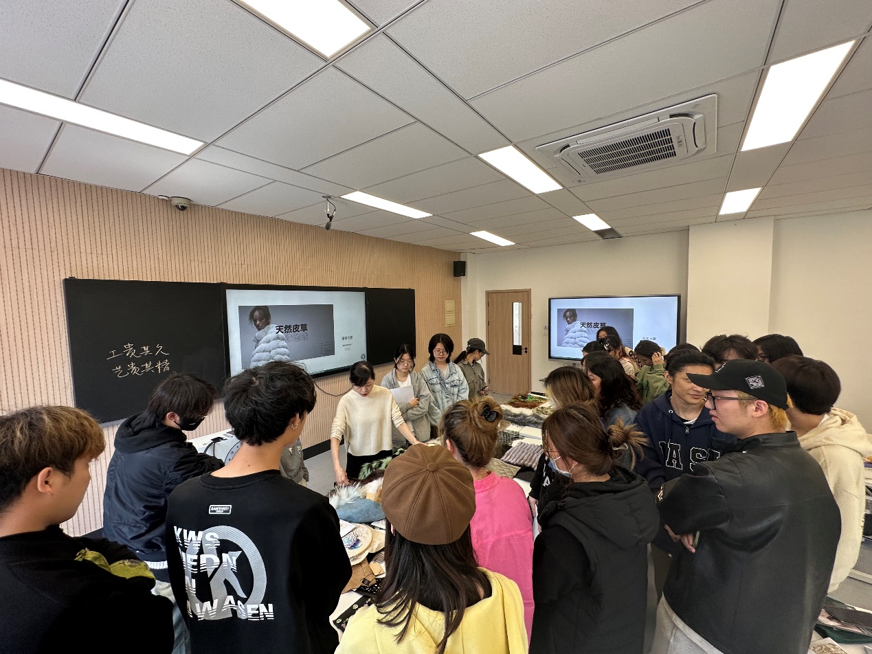 Toprovide students with a more intuitive understanding of fur fabrics,Ms. Wang specially brought a large number of cutting-edge fur designsamples. She explained the characteristics, craftsmanship, andgroundbreaking design ideas of various fur types to the studentson-site, illustrating the unique emotional value added to each furpiece. Additionally, Ms. Wang commented on the students' fabricdesign samples and inspiration atmosphere sketches, receivingenthusiastic interaction and responses from the students, and theatmosphere was lively.