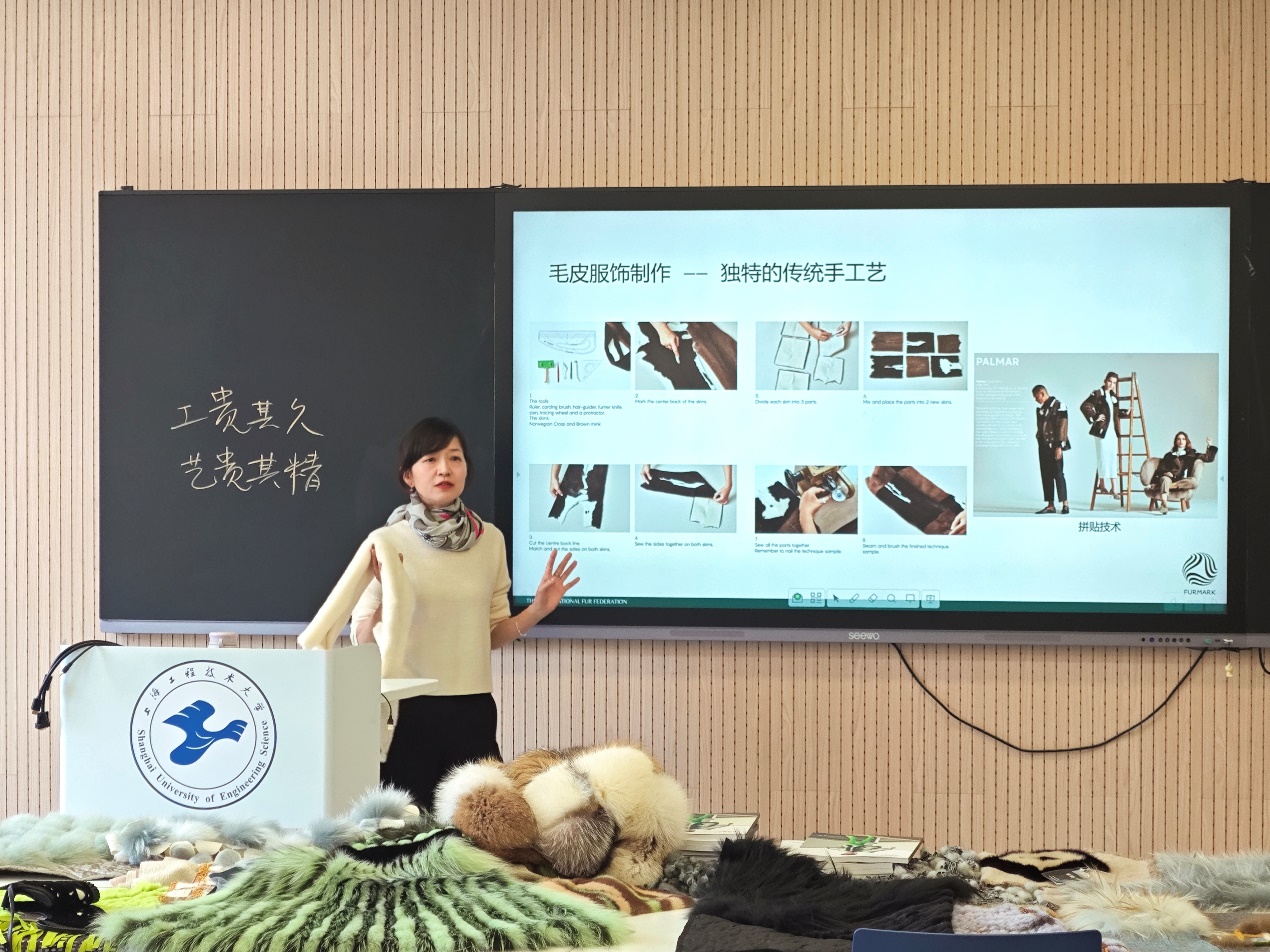 OnMarch 29, 2024, Ms. Wang Jing, CEO of the Fur Council of Canada -China, delivered a lecture on creative redesign of natural furmaterials with the theme of "Fashion Sustainability, FurElegance and Rejuvenation". Ms. Wang focused on introducing thesources, operations, and production processes of natural fur. Throughvivid and engaging methods such as showcasing cutting-edge fur designcases and on-site appreciation of creative fabric samples, sheinspired innovative thinking in fabric transformation among youngdesigners and disseminated the concept of zero-waste and sustainablefashion design in natural fur.