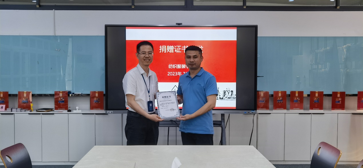 Then came the signing ceremony of material donation, which reached the donation agreement on behalf of the two sides, and further strengthened the school-enterprise cooperation relationship. Subsequently, President Xin Binjie issued the donation certificate to Shenzhen Boke Times Technology Development Co., Ltd., thanking him for his generous donation and educational support to the Textile and Garment College.