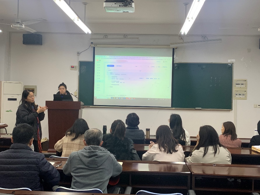 In order to strengthen the application of digitalization in grassroots teaching, improve the level of teacher teaching informatization, and promote virtual teaching and research rooms and knowledge graphs construction, on the afternoon of March 31st, School of Textile and Fashion invited Teacher Hu Ziqi, the product manager of the Chaoxing Fanya Learning Platform, to the college for training on virtual teaching and research rooms and knowledge graphs construction. The heads of various professional departments and teacher representatives from Textile and Clothing College attended the training, and the meeting was presided over by Professor Li Chunxiao, Vice Dean of Teaching at the college.