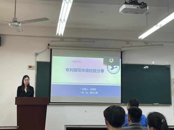 On April 26th, the School of Textile and Clothing held a seminar on "Patent Writing and Application" for graduate students in Art Building C310. Wang Qiming, a representative of outstanding students majoring in textile engineering, was invited to share patent writing and application. Graduate students from the School of Textile and Clothing attended the lecture.