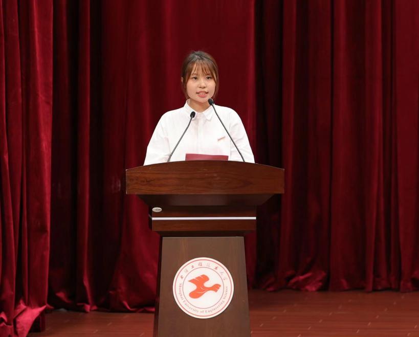 Zhu Junxuan, Secretary of the Party Committee of the College, carried out the initiation education for new students from three aspects, namely, "What kind of political party is the Communist Party of China (CPC)", "Why do we want to join the CPC" and "How do we join the CPC" under the title of "Continuing the Red Gene, Youthful Faith Walking Together", and expressed the hope that the students present here will firmly uphold their ambition to serve the country and set up the monument of faith that is anchored in the heart, so that they will join the CPC as soon as possible during the journey of realizing the great Chinese dream!