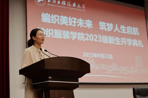 In the afternoon of September 22nd, Textile and Clothing College held a grand opening ceremony for the new students of 2023 in Zhihong Hall. Zhu Junxuan, Secretary of the Party Committee of Textile and Clothing College, Xin Binjie, Deputy Secretary of the Party Committee and President of the College, Xie Zhixia, Deputy Secretary of the Party Committee, Qu Hongjian, Li Chunxiao, Xu Lihui, Vice President of the Party Committee, all the class teachers of the new students, and all the counselors to participate in the opening ceremony. 2023 class of the Textile and Clothing College of all the new students of more than 600 students gathered in the Hall of Zhihong to open a brand-new chapter of their lives, the ceremony was presided over by the Deputy Secretary of the Party Committee of the College, Xie Zhixia.