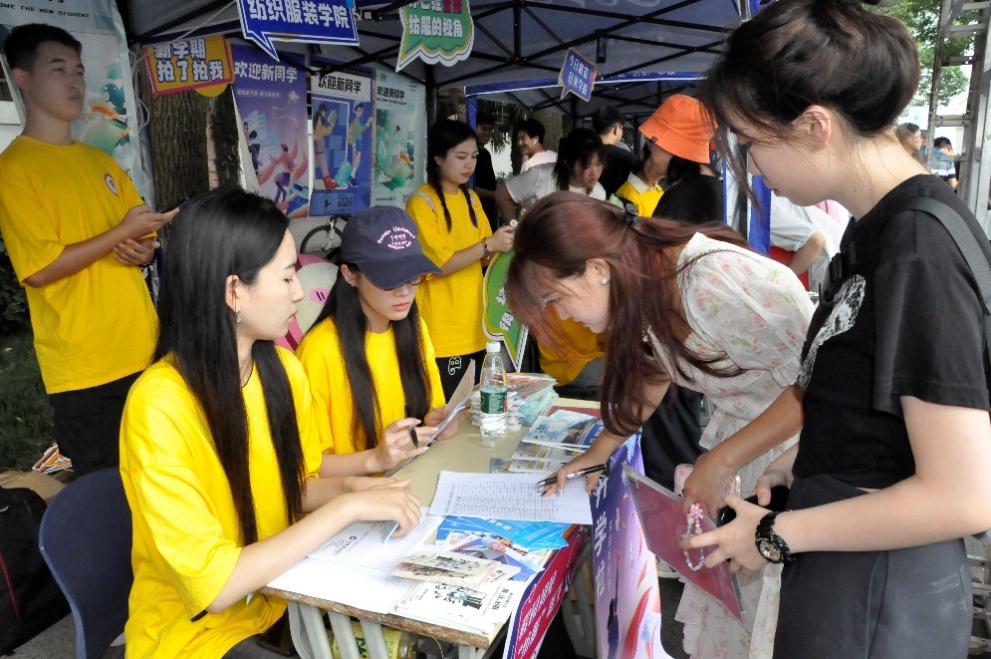 From September 14th to 15th, the College of Textile and Clothing welcomed more than 600 new students of the class of 2023. Zhu Junxuan, Secretary of the Party Committee of the College, Xin Binjie, Deputy Secretary of the Party Committee and President of the College, and Xie Zhixia, Deputy Secretary of the Party Committee, were at the welcoming point to welcome the new students. Early in the morning, counselors and volunteers were located at the new student check-in point, welcoming the new students with the most heartfelt and exquisite on-site arrangement, and welcoming the new students with enthusiasm. Volunteers are well organized, clear division of labor, they carefully check the information, patiently answer the questions and lead the little budding newcomers to open a brand new chapter. The intimate volunteer service, warm-hearted elder sister and the longing freshmen constitute a big group of spinning clothes.