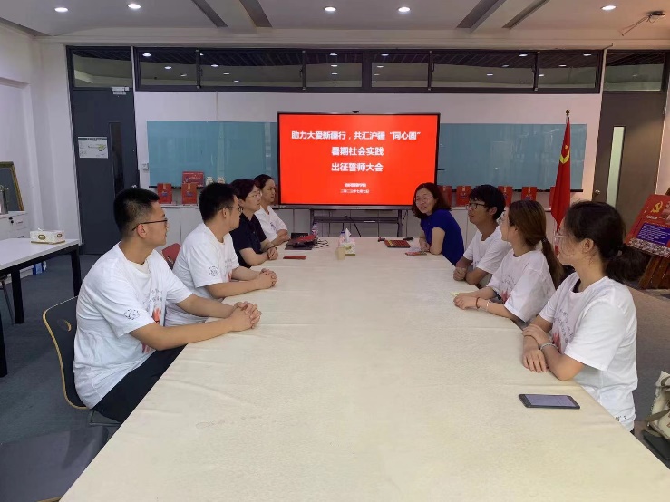 On July 7th, the Party Committee of the Textile and Clothing College held a summer social practice oath ceremony titled "Assisting the Great Love of Xinjiang and Jointly Drawing the ' concentric circles ' of Shanghai and Xinjiang" at the C210 Art Building. Zhu Junxuan, Secretary of the Party Committee of the Textile and Clothing College, Xie Zhixia, Deputy Secretary of the Party Committee, Xin Yuan, and Liang Shuaitong, the team leader, as well as all the students who went on the expedition, participated. The meeting was chaired by Professor Xie Zhixia, Deputy Secretary of the Party Committee.