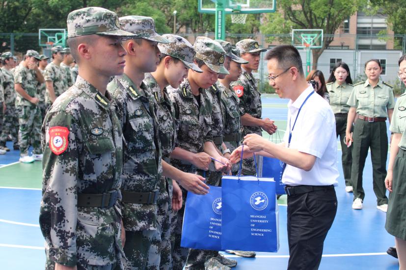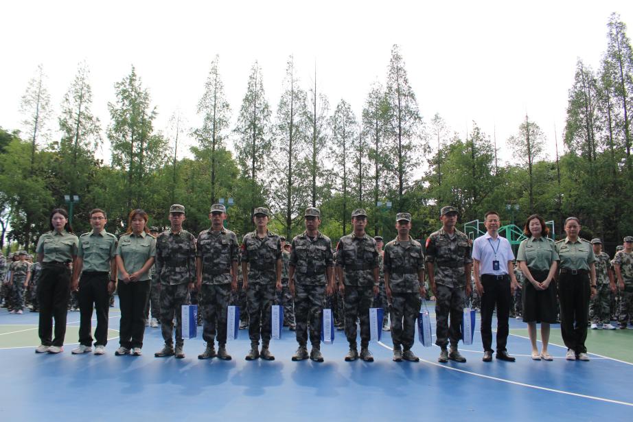 Teacher Xin Binjie expressed sincere condolences to all the instructors and students participating in the training, fully recognizing the achievements of the military training, and expressing sincere gratitude to the instructors for their hard work and dedication. Teacher Xin used the example of "etiquette, music, archery, imperial examination, calligraphy, and numerology" during the Western Zhou Dynasty to explain the origin and importance of military training to his classmates. He hoped that students could cultivate patriotism, develop the ability to overcome difficulties, refine character, handle teacher-student relationships, classmate relationships, superior-subordinate relationships, comrade relationships, and gain friendship through military training. Finally, Teacher Xin distributed condolences to the seven training instructors and, together with Deputy Secretary Xie Zhixia and training counselors, distributed mineral water and other supplies to all the participating students.