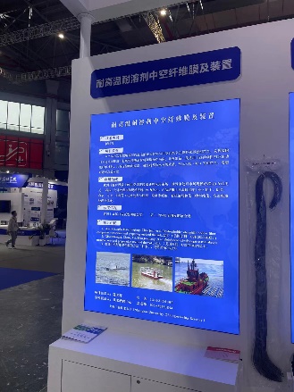 纤维材料研究中心科研创新成果“耐高温耐溶剂中空纤维膜及装置”精彩亮相高校展区,该产品适用于复杂和重度工业(化工、冶金、印染、电子、生物等)污水处理与回用、垃圾渗滤液、有机溶剂和化工物料纯化,高温废油处理等领域,公司积极推动公司科技成果与产业生产实践精准对接,将继续在项目跟踪和技术转移中提供专业服务,为公司的科技成果转化不断努力。